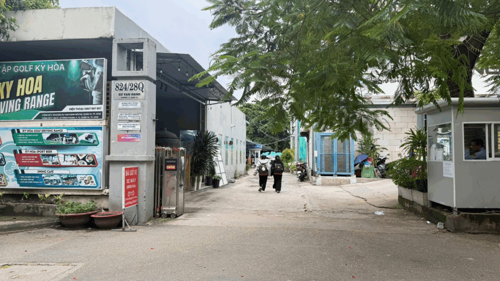 - Sân tập golf Kỳ Hòa (824/28Q Sư Vạn Hạnh). Để vào đây, bạn đi con hẻm bên hông cơ sở và đi thẳng tuốt ra sau. Đây là bãi xe ưa thích của sinh viên HUFLIT học tại cơ sở Sư Vạn Hạnh. Giá gửi xe vào tháng 9/2025 là 5 nghìn đồng/lượt.